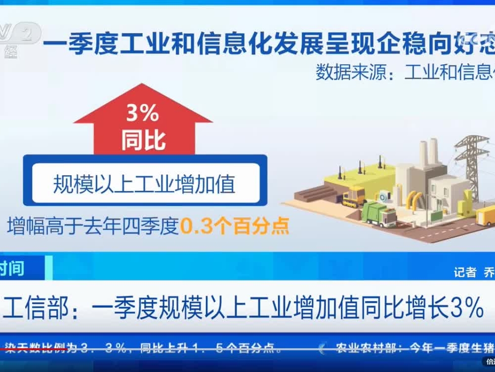 工信部:一季度規(guī)模以上工業(yè)增加值同比增長3%