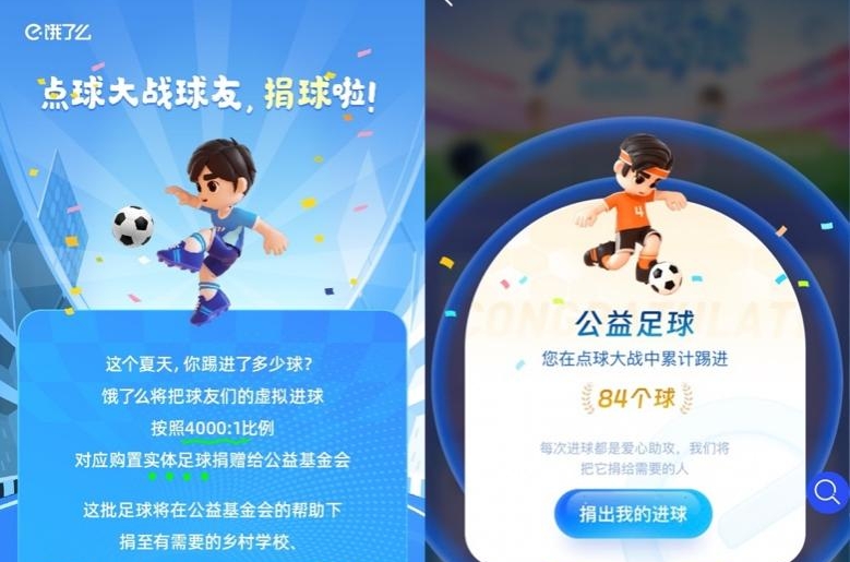餓了么上線公益足球捐贈(zèng):讓數(shù)千萬(wàn)個(gè)游戲進(jìn)球變身實(shí)物足球捐給需要的人