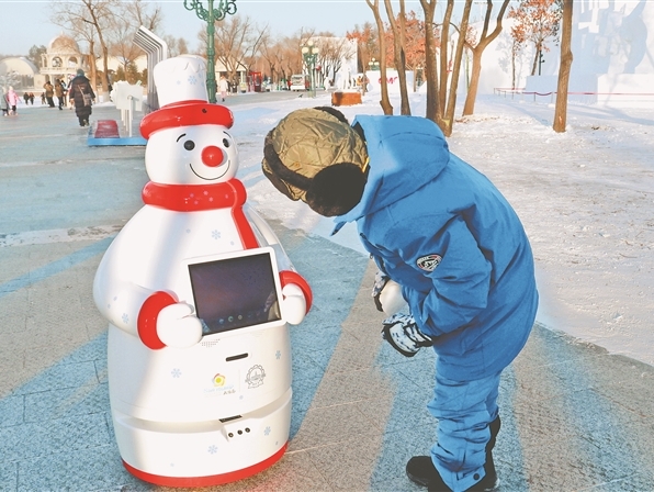 智能機(jī)器人在太陽島雪博會上崗