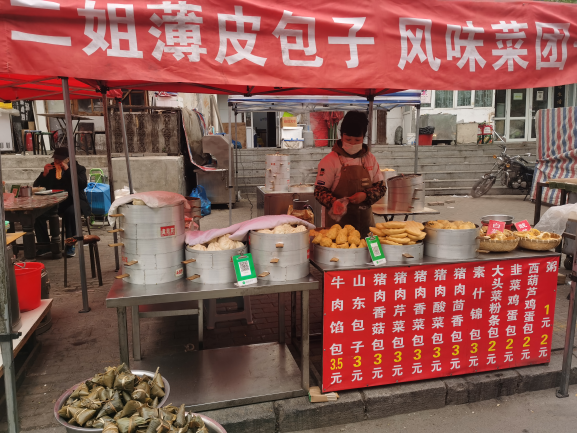 早市的吸引力在于“看”。早市上,各攤主會(huì)想各種各樣的方式招攬顧客,有的會(huì)用廣告牌,有的會(huì)吆喝。早市上的商業(yè)運(yùn)作方式也非常有趣,比如現(xiàn)場(chǎng)擠羊奶,旁邊拴幾頭奶羊,當(dāng)招牌;賣(mài)刀切面的現(xiàn)場(chǎng)切,炸油條的現(xiàn)場(chǎng)炸,都是明檔手工,這幾乎是大多數(shù)早市商家的促銷(xiāo)手段。也有推銷(xiāo)老花鏡的,賣(mài)衣服的,會(huì)現(xiàn)場(chǎng)吆喝“正宗商品專(zhuān)柜,清倉(cāng)促銷(xiāo)”——這大概是現(xiàn)在“直播帶貨”的線下模式。住在早市附近的居民,有的會(huì)在樓上用繩子吊下個(gè)籃子,讓攤主把東西放到籃子里,直接拽上去。