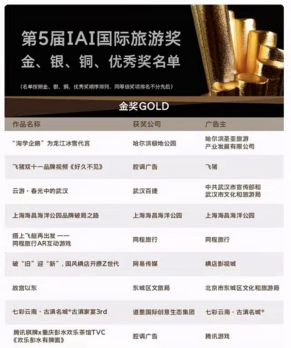 據(jù)了解,IAI國(guó)際旅游獎(jiǎng)是知名的綜合性廣告與品牌營(yíng)銷賽事評(píng)選,是國(guó)際化的旅游營(yíng)銷及行業(yè)運(yùn)營(yíng)評(píng)選活動(dòng)。國(guó)內(nèi)眾多營(yíng)銷及廣告類重量級(jí)機(jī)構(gòu)參與角逐,此次組委會(huì)共收到779家公司報(bào)送的3083件作品及案例,由270多位來(lái)自各領(lǐng)域的專家組成的終審團(tuán)進(jìn)行評(píng)審。