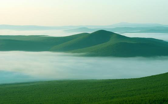 黑河地處大興安嶺東端,小興安嶺北部,境內(nèi)群山連綿起伏,溝谷縱橫,地貌特征豐富:低山、丘陵、火山熔巖臺地、盆地、平原和河谷不一而足,就像一曲森林小夜曲,節(jié)奏自由、表現(xiàn)手法豐富,極富浪漫主義色彩。