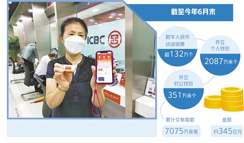 數(shù)據(jù)顯示,截至9月10日,工行北京分行試點(diǎn)的數(shù)字人民幣應(yīng)用場(chǎng)景達(dá)8萬多個(gè),集中在與社會(huì)民生緊密相關(guān)的交通出行、餐飲住宿、購(gòu)物消費(fèi)、旅游觀光、醫(yī)療衛(wèi)生、通信服務(wù)、票務(wù)娛樂7大類場(chǎng)景。中國(guó)人民銀行近期發(fā)布的《中國(guó)數(shù)字人民幣的研發(fā)進(jìn)展》白皮書顯示,截至今年6月末,數(shù)字人民幣試點(diǎn)場(chǎng)景已超132萬個(gè),開立個(gè)人錢包2087萬余個(gè)、對(duì)公錢包351萬余個(gè),累計(jì)交易筆數(shù)7075萬余筆、金額約345億元。