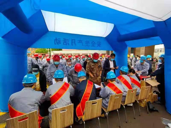 利用“安全生產(chǎn)月”和“安全生產(chǎn)龍江行”活動(dòng)開展之機(jī),組織安全生產(chǎn)月主題宣傳、學(xué)規(guī)程贏獎(jiǎng)品、主題演講比賽、為安全生產(chǎn)獻(xiàn)計(jì)獻(xiàn)策活動(dòng)、直擊現(xiàn)場(chǎng)應(yīng)急處置知識(shí)抽查、安全事故警示片觀看、應(yīng)急救援和CPR救護(hù)比武、300平燒結(jié)作業(yè)區(qū)皮帶著火事故應(yīng)急演練、二級(jí)主管公開課、安全知識(shí)競(jìng)賽等11個(gè)安全活動(dòng),制作板報(bào)49塊、標(biāo)語84個(gè)、橫幅55條、彩虹門3個(gè)、景觀4處、展板、彩旗、飄旗等宣傳用品,讓濃濃的安全教育氛圍時(shí)刻影響著每名員工。