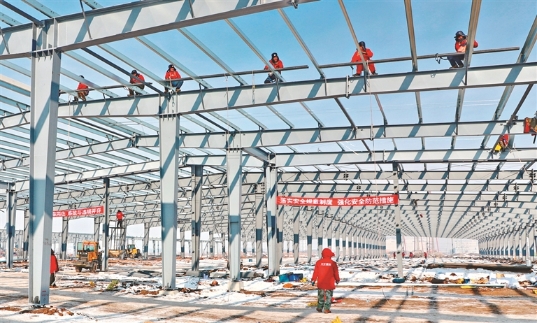 黑龍江日報(bào)訊(陳丹華 王木超 黑龍江日報(bào)全媒體記者孫昊)春節(jié)過后,依安經(jīng)濟(jì)開發(fā)區(qū)內(nèi)北緯47綠色有機(jī)食品產(chǎn)業(yè)項(xiàng)目就已復(fù)工建設(shè),全力開展鋼構(gòu)施工。