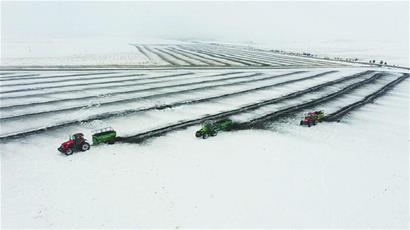 黑龍江經濟網訊(姚愛群 于淑鴻)眼下,黑河遜克省級農業(yè)科技園區(qū)的耕地上還覆蓋著厚厚的積雪,可原野上隆隆的機械揚起陣陣飛雪,三臺大型肥料拋撒車和工人頂風冒雪開展施肥作業(yè),均勻拋撒著新型有機肥料——“土壤改良劑”。