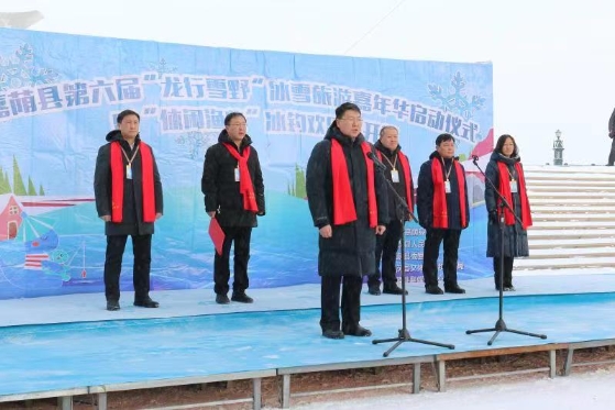 嘉蔭縣委副書記、縣長李長江代表嘉蔭縣委、縣政府為活動致辭,他說,本次活動是嘉蔭人民克服三年疫情影響,進(jìn)一步發(fā)展冰雪經(jīng)濟(jì)、展示多元文化、彰顯小城風(fēng)采的具體行動。誠邀全國各地的朋友們齊聚嘉蔭,行界江小鎮(zhèn)之旅,聽龍吟傳唱;賞龍江邊城佳景,釣鮮美江魚。