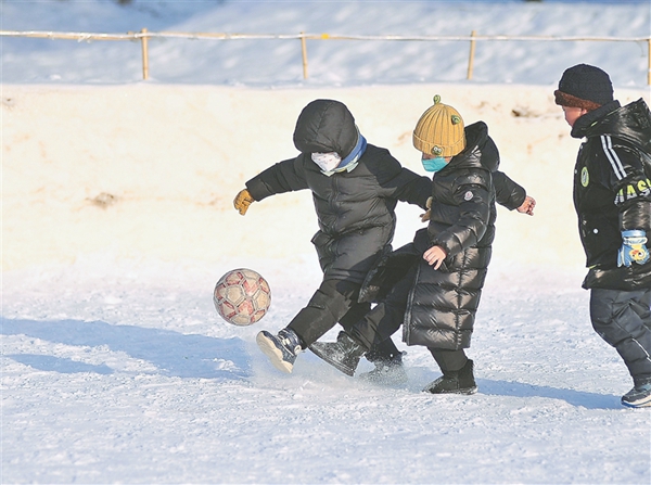 近日,在哈爾濱市道里區(qū)體育公園內(nèi),市民和游客齊聚滑冰場(chǎng),孩子們你追我趕,叫喊聲、歡笑聲不絕于耳。踢雪地足球、抽冰尜、玩雪滑梯、堆雪人……家長(zhǎng)孩子一起“撒歡兒”,快樂(lè)解壓。