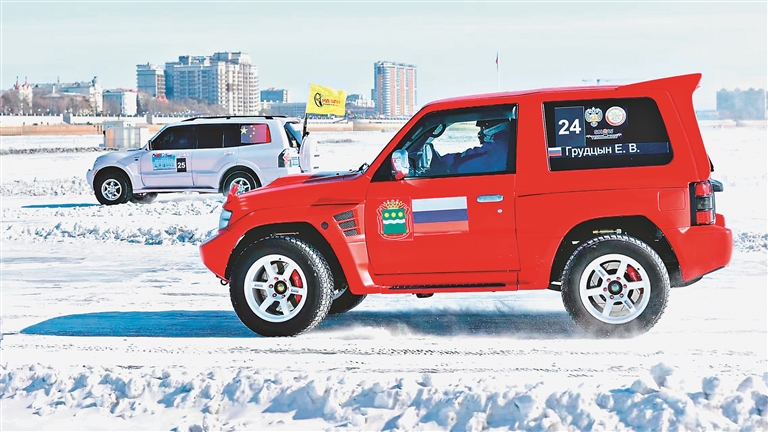 本次比賽地點設(shè)在中俄界江黑龍江江面上。比賽設(shè)置大排量和小排量兩個組別,進行資格賽和決賽的比拼,雙方各派出20輛汽車參賽。比賽采用電子計時和機械計時兩種方式,參賽選手分別在周長1.5公里的A型場地和3.8公里的B型場地上駕車行駛,兩次用時之和為最終比賽成績,用時最短者勝出?,F(xiàn)場500多名中俄觀眾共賞這場冰雪汽車挑戰(zhàn)盛宴。
