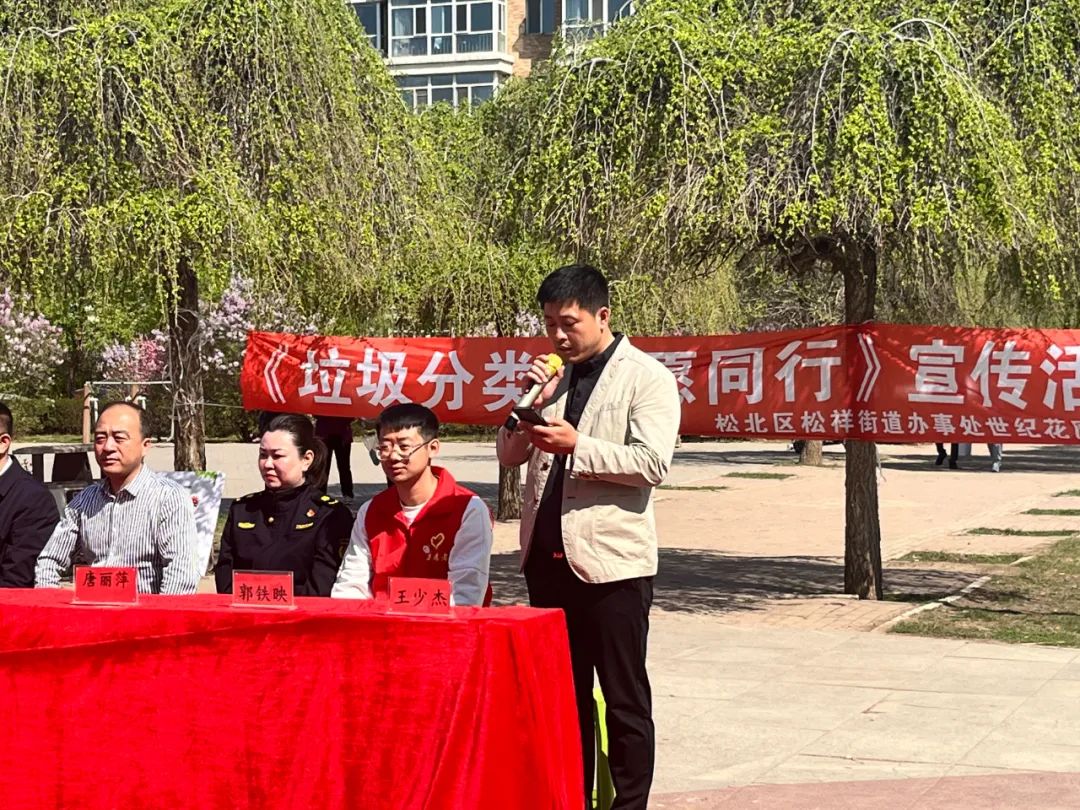 活動(dòng)開場(chǎng),松北區(qū)松祥街道辦事處世紀(jì)花園社區(qū)王少杰書記作了表態(tài)發(fā)言,作為垃圾分類監(jiān)督員、推廣員,要履行好自己的職責(zé),做好垃圾分類工作。通過公益活動(dòng)宣傳,要把垃圾分好類,為環(huán)境保護(hù)做出自己的貢獻(xiàn)。同時(shí)也呼吁各位居民朋友自覺分類投放垃圾,共同為社區(qū)的環(huán)境貢獻(xiàn)自己的一份力量。