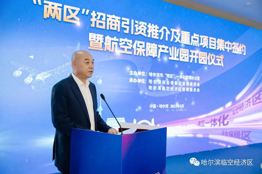 “兩區(qū)”管委會(huì)領(lǐng)導(dǎo)分別對(duì)哈爾濱綜合保稅區(qū)與哈爾濱臨空經(jīng)濟(jì)區(qū)重點(diǎn)園區(qū)、營(yíng)商環(huán)境、產(chǎn)業(yè)政策等特色優(yōu)勢(shì)作招商推介,誠(chéng)邀五湖四海的客商朋友來(lái)“兩區(qū)”投資興業(yè)、共商發(fā)展,吸引和促進(jìn)優(yōu)質(zhì)資源和高端要素匯聚“兩區(qū)”。哈爾濱臨空經(jīng)濟(jì)區(qū)航空保障產(chǎn)業(yè)園在全體來(lái)賓的見證下正式啟動(dòng),該園總建筑面積12萬(wàn)平方米,總投資5.6億元,重點(diǎn)發(fā)展航空總部經(jīng)濟(jì)、航空制造產(chǎn)業(yè)、航空物流產(chǎn)業(yè)、臨空制造產(chǎn)業(yè)以及航空服務(wù)、航空食品等產(chǎn)業(yè),致力打造為哈爾濱臨空經(jīng)濟(jì)區(qū)發(fā)展現(xiàn)代制造業(yè)的新名片,成為國(guó)內(nèi)知名的航空保障產(chǎn)業(yè)集群。