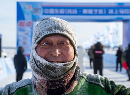 中國東極(撫遠(yuǎn)·黑瞎子島)冰上馬拉松賽已經(jīng)連續(xù)五屆在撫遠(yuǎn)市舉辦,憑借地域唯一性和極限挑戰(zhàn)性,成為全球五大冰上馬拉松之一,開創(chuàng)中國極限冰雪馬拉松運動的先河。本屆賽事由黑龍江省體育局、佳木斯市人民政府主辦,省政府黑瞎子島建設(shè)和管理委員會、撫遠(yuǎn)市人民政府承辦。中國奧委會副主席、中田協(xié)名譽主席段世杰前往比賽開幕式鳴槍。賽事設(shè)有全程馬拉松、半程馬拉松、新年歡樂跑三個項目。清晨7點,撫遠(yuǎn)市的氣溫達到了零下23.3攝氏度,選手們紛紛帶上防風(fēng)面罩、保暖帽、手套、太陽鏡、防滑冰爪等應(yīng)對極端嚴(yán)寒環(huán)境下的特殊裝備,在全程42.195公里的冰賽道上,徒步穿越冰雪世界,體驗當(dāng)?shù)鬲毺乇┪幕兔袼罪L(fēng)情,品嘗賽道補給站提供的熱氣騰騰的鱘鰉魚鍋、鮮鯽魚湯等地方特色補給品,補充能量抵御嚴(yán)寒。