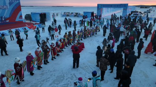 為豐富此次冰馬活動內(nèi)涵,賽事主辦方邀請當(dāng)?shù)睾照茏迦罕娚碇照茏鍌鹘y(tǒng)服裝歡歌起舞,為比賽祈福、為選手祝福;并為選手特制提供了紅魚籽、蔓越莓鮮果、玖成富硒米等特色禮包;除此之外,比賽現(xiàn)場還設(shè)置了鄉(xiāng)村美食科目三冰上比舞、蔓越莓煮酒論英雄、冰缸曬寶等觀賞互動環(huán)節(jié),沿賽道沿岸打造了東字迷宮、“東極冰雪世界”主題樂園,充分展示地方特產(chǎn)資源和地域文化特色,為參觀比賽的全國各地游客提供更加豐富的視覺和味覺的盛宴。