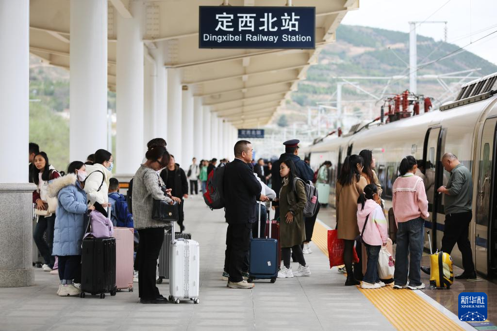 9月30日,旅客在寶蘭高鐵甘肅定西北站站臺(tái)乘車出行。新華社發(fā)(王克賢攝)