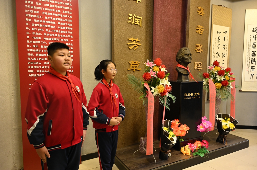 黑龍江經(jīng)濟網(wǎng)訊(王丹陽 記者 祝東)近日,在百歲老人張慶云逝世十四周年之際,“致敬黨員楷模,向張慶云同志學習”主題黨日活動在阿城區(qū)雙豐鎮(zhèn)慶云希望小學開展。團省委機關(guān)、省希望工程捐助中心、哈爾濱市注冊會計師行業(yè)、團阿城區(qū)委、區(qū)教育局等單位黨員代表,以及阿城區(qū)“思政一體化”聯(lián)盟校相關(guān)領(lǐng)導參加了紀念活動。