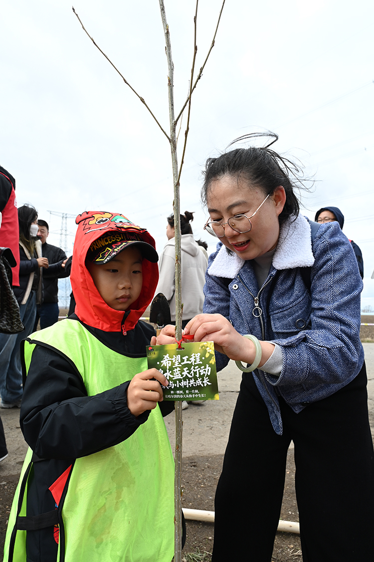 當日上午,義務植樹隊伍集合出發(fā),分組領取工具并開展植樹技術(shù)交底?;顒蝇F(xiàn)場,大家分工協(xié)作,揮鍬培土、扶苗澆水,共栽種樹苗100余株。每棵新植樹苗均懸掛“寄語卡片”,青少年們用文字和繪畫表達對未來的祝福,童心港灣學生代表以“‘我與小樹共成長’ 愛綠護綠環(huán)保行”為主題,將生態(tài)環(huán)保與愛黨愛國情懷深度融合。隨后,舉行“希望林”揭牌儀式,象征著又一片綠色希望落地扎根。