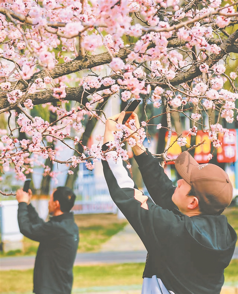 一團(tuán)團(tuán)、一簇簇杏花競(jìng)相綻放,似天邊絢麗的云霞飄落人間,為佳木斯這座城市精心勾勒出一幅絕美而靈動(dòng)的畫卷。