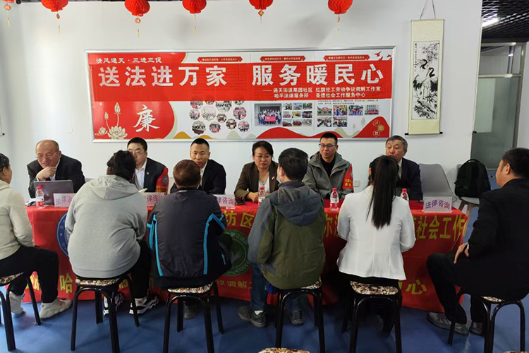 黑龍江經(jīng)濟(jì)網(wǎng)訊(裴桐 單琳琳 劉佳宇 記者魏?。樘岣呱鐓^(qū)居民對法律法規(guī)的知曉率,增強(qiáng)居民法治意識和法律素養(yǎng),提升依法維權(quán)能力,5月20日,由哈爾濱市香坊區(qū)人力資源和社會保障局、香坊區(qū)司法局、香坊區(qū)通天街道辦事處指導(dǎo),香坊區(qū)通天街道果園社區(qū)聯(lián)合香坊區(qū)紅旗社工勞動爭議調(diào)解工作室、香坊區(qū)哈平法律服務(wù)所和圣德社會工作服務(wù)中心共同開展“與法同行零距離 法治社區(qū)共締造”普法宣傳活動。通天街道辦事處主任徐東影、區(qū)人社局副局長楊軍、區(qū)仲裁院院長王建松參加了普法講座。