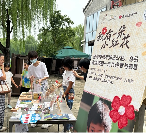 北京慈弘慈善基金會(huì)在后海望海樓舉辦“小紅花公益市集”,通過義賣來支持鄉(xiāng)村學(xué)校圖書角建設(shè),受到市民和游客們的歡迎