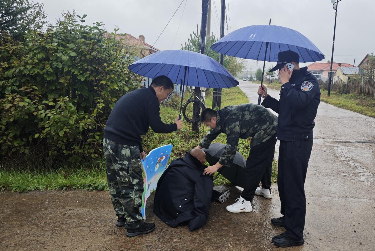 到達(dá)現(xiàn)場(chǎng)后,民警發(fā)現(xiàn)老人面部有明顯擦傷,腿部無法活動(dòng)。為避免隨意移動(dòng)造成二次傷害,民警第一時(shí)間找來雨傘和棉襖,一邊撐傘為老人遮擋風(fēng)雨,一邊用棉襖裹住老人身體保暖。同時(shí),民警迅速聯(lián)系老人家屬,并撥打120急救電話,家屬表示希望將老人送往縣里醫(yī)院治療。民警又緊急協(xié)調(diào)縣里的救護(hù)車,在等待期間,民警一直撐著傘守護(hù)老人,并與老人輕聲交談,耐心安撫老人情緒,緩解其緊張與疼痛。