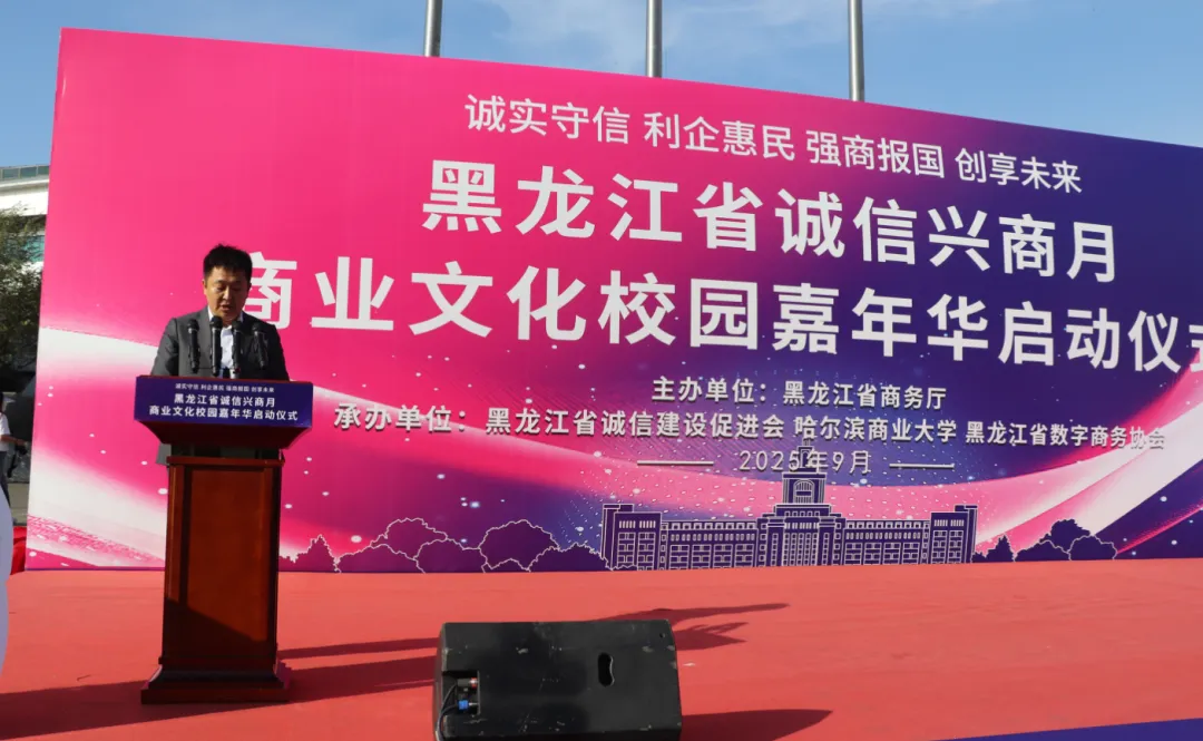 黑龍江經濟網(wǎng)訊(朱麗穎 記者崔冰)9月23日,由黑龍江省商務廳主辦,黑龍江省誠信建設促進會、哈爾濱商業(yè)大學、黑龍江省數(shù)字商務協(xié)會共同承辦的黑龍江省2025年"誠信興商宣傳月"啟動儀式在哈爾濱商業(yè)大學江北校區(qū)隆重舉行。