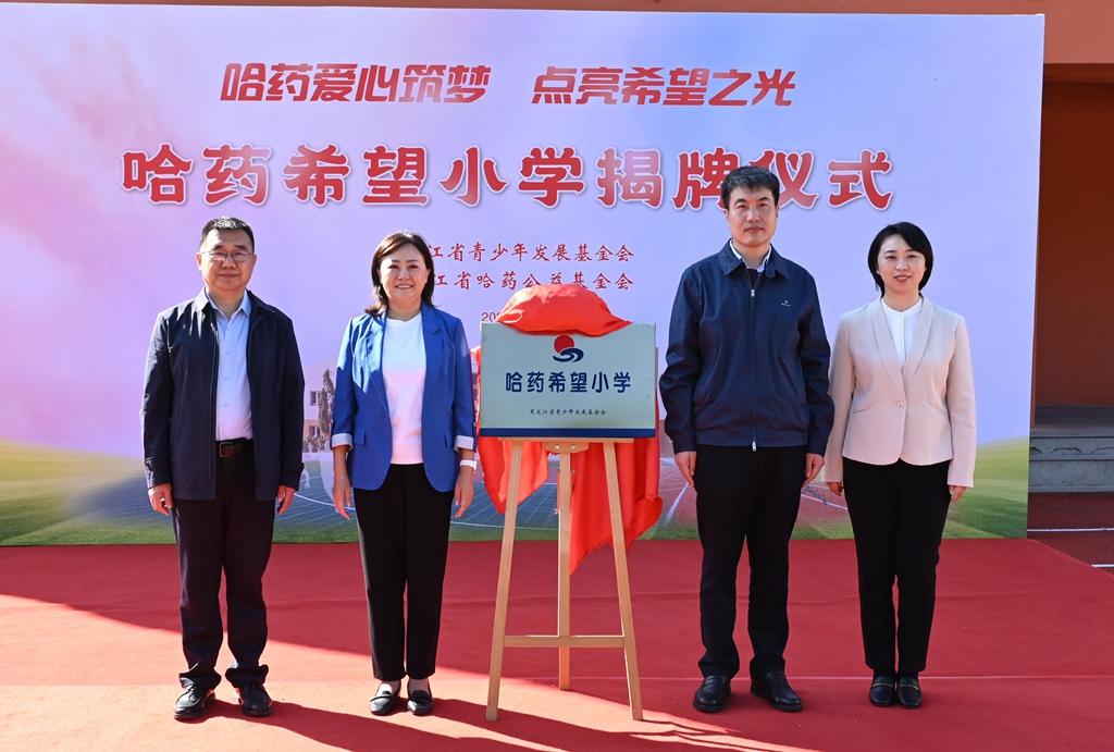 隨后,領(lǐng)導(dǎo)嘉賓為哈爾濱市香坊區(qū)幸福鎮(zhèn)哈藥希望小學(xué)揭牌,標(biāo)志著這所學(xué)校將以嶄新面貌,承載更多夢(mèng)想與希望,開(kāi)啟新的篇章。