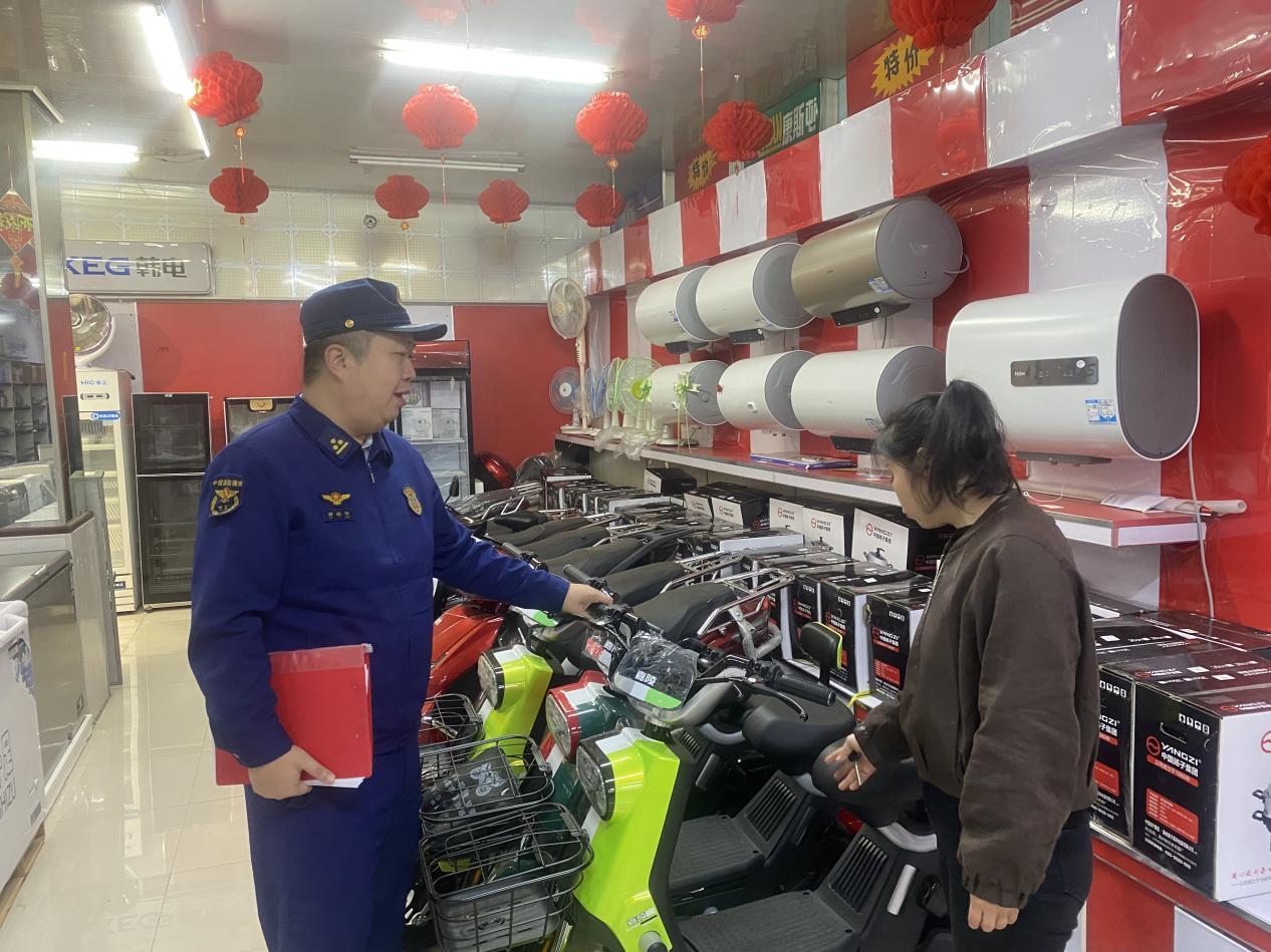 塔河縣消防救援大隊(duì)執(zhí)法人員深入電動車銷售門店開展安全檢查(孫珍珍 攝)