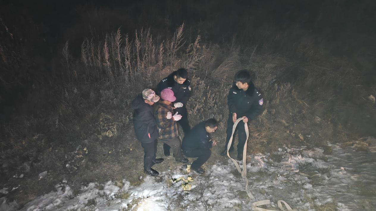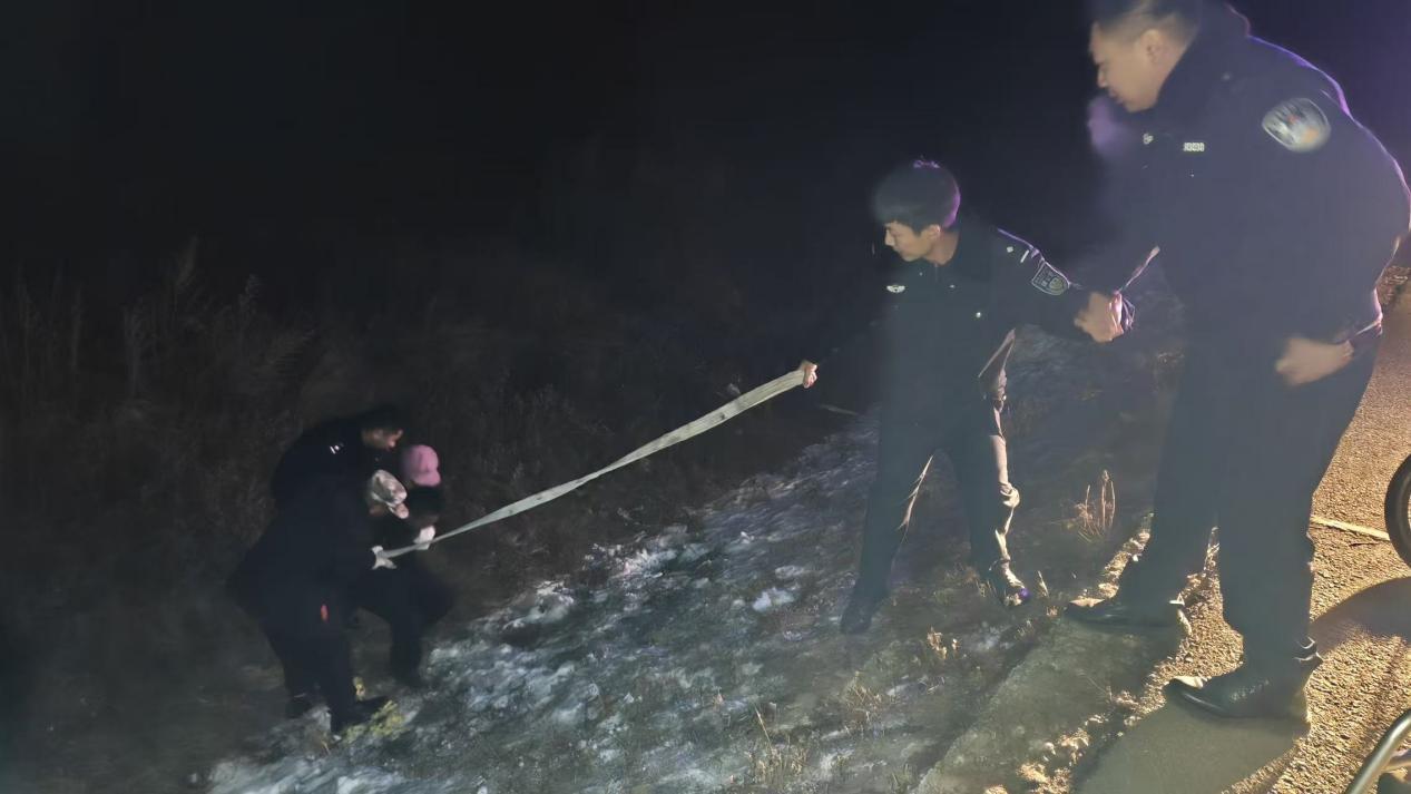 據(jù)了解,當(dāng)時(shí)呼瑪縣公安局興華派出所民輔警正對(duì)轄區(qū)開展常態(tài)化巡查,發(fā)現(xiàn)一位群眾在路邊攔住警車,民輔警立即停車查看情況。詢問得知,該群眾的妻子乘坐電動(dòng)輪椅時(shí)由于天黑路滑不慎駛進(jìn)了深溝,因其妻子年過六旬身體殘疾且行動(dòng)不便,墜入深溝摔倒后無法起身,恰好此時(shí)看到巡邏的警車,便立刻攔車尋求幫助。