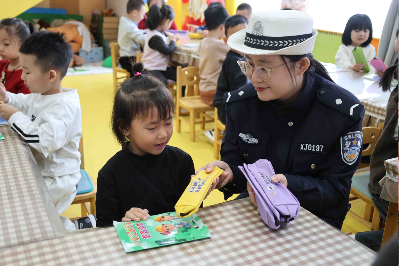 活動中,民警結合幼兒認知特點,將枯燥的交通法規(guī)轉化為生動有趣的互動形式,通過發(fā)放安全宣傳圖冊、粘貼海報、播放交通安全卡通動畫等寓教于樂的形式,用通俗易懂的語言向孩子們普及信號燈通行規(guī)則、過馬路走斑馬線及冬季出行安全知識和注意事項,進一步提升師生的安全出行意識和守法意識。同時,持續(xù)強化“小手拉大手”示范引領作用,積極鼓勵孩子們當起家庭“交通安全監(jiān)督員”,將活動中學到的交通安全知識傳遞給父母,提醒家長冬季出行要做到不酒駕、不超速、乘車系好安全帶等出行注意事項,時刻督促家人養(yǎng)成良好出行習慣。