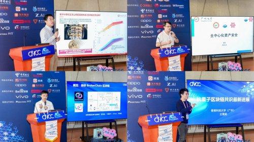圖二 四大主題演講現(xiàn)場(chǎng):北大、中大、廣州大學(xué)、港科大(廣州)專家解構(gòu)量子與區(qū)塊鏈金融安全協(xié)作方案