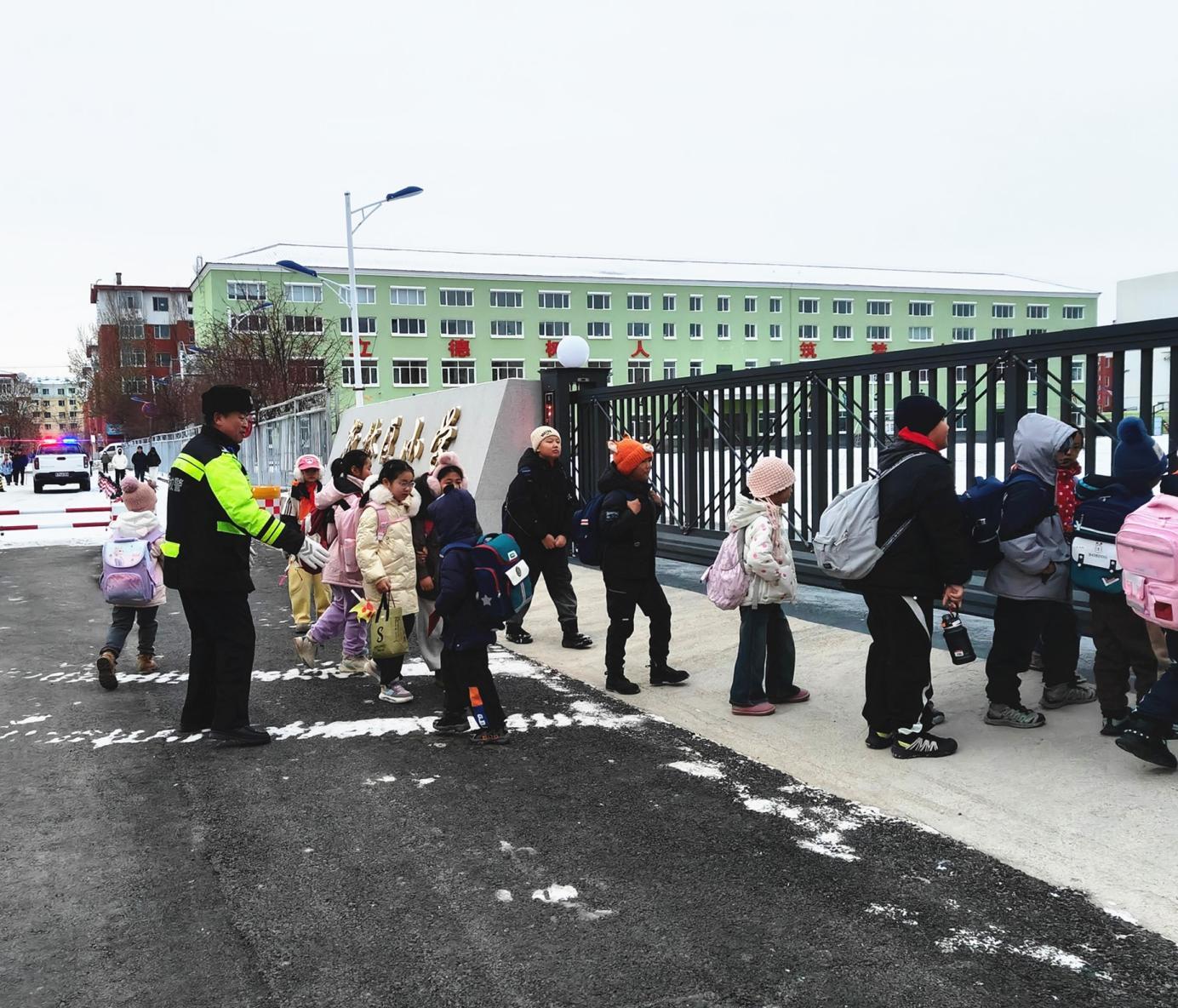 自“護學崗”機制常態(tài)化運行以來,新林區(qū)公安局始終將校園安全置于民生工作的重要位置,聚焦“上學、放學”兩個關鍵時段,圍繞“校門口、周邊路、重點段”三個核心區(qū)域,制定“一校一策”護學方案?!靶∨笥?,慢點走,注意看車!”在學校門口,交警正牽著學生的手,將他們安全帶過馬路。一方面疏導校門口交通,引導接送車輛有序停放、即停即走,避免擁堵;另一方面加強校園周邊巡邏防控,排查安全隱患,護送學生安全過馬路、進出校園,用腳步丈量平安距離。