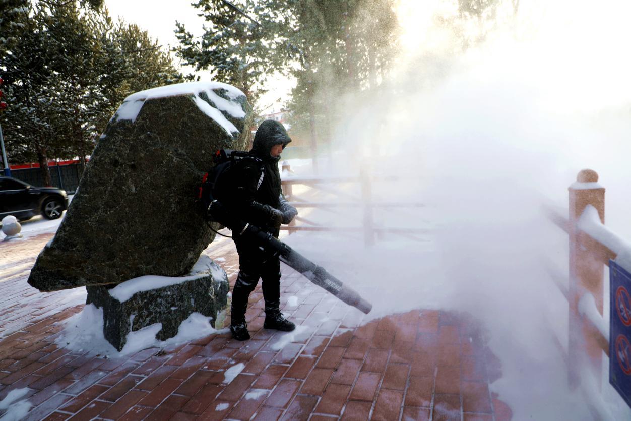 早晨7時(shí)天剛亮,中華路、西華路等主次干道、背街巷道及賓館、公園、居民樓區(qū)已處處是忙碌身影。大型清雪機(jī)械開(kāi)足馬力穿梭作業(yè),高效清除主干道厚積雪。手持鏟子、雪鍬的清掃職工俯身鏟除殘留積雪,有的巧用風(fēng)力滅火機(jī)清理人行道路面浮雪,默契配合打通清雪“最后一米”。凜冽寒風(fēng)中,大家不顧嚴(yán)寒、干勁十足,額間汗水與林間霧氣交織,構(gòu)成冬日里最溫暖的風(fēng)景線(xiàn)。