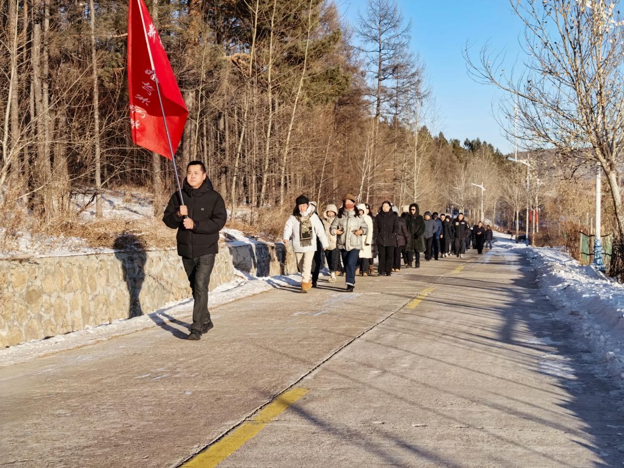 活動(dòng)中,150余名林業(yè)局機(jī)關(guān)干部職工在原林園門前集結(jié)。隨著出發(fā)指令下達(dá),徒步隊(duì)伍沿著預(yù)設(shè)路線有序前行,有經(jīng)驗(yàn)豐富的職工帶頭穩(wěn)步前行,不時(shí)提醒身旁同事注意腳下安全。年輕干部們活力滿滿,時(shí)而相互鼓勁,時(shí)而駐足欣賞沿途銀裝素裹的冬日盛景,盡管天氣寒冷,但絲毫未影響大家的參與熱情。經(jīng)過兩個(gè)小時(shí)的徒步,大家攜手并進(jìn)順利抵達(dá)終點(diǎn)。