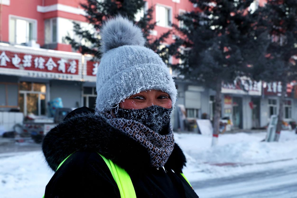 阿木爾林業(yè)局環(huán)衛(wèi)工在極寒天氣中依舊堅守在崗位上(王力 攝)