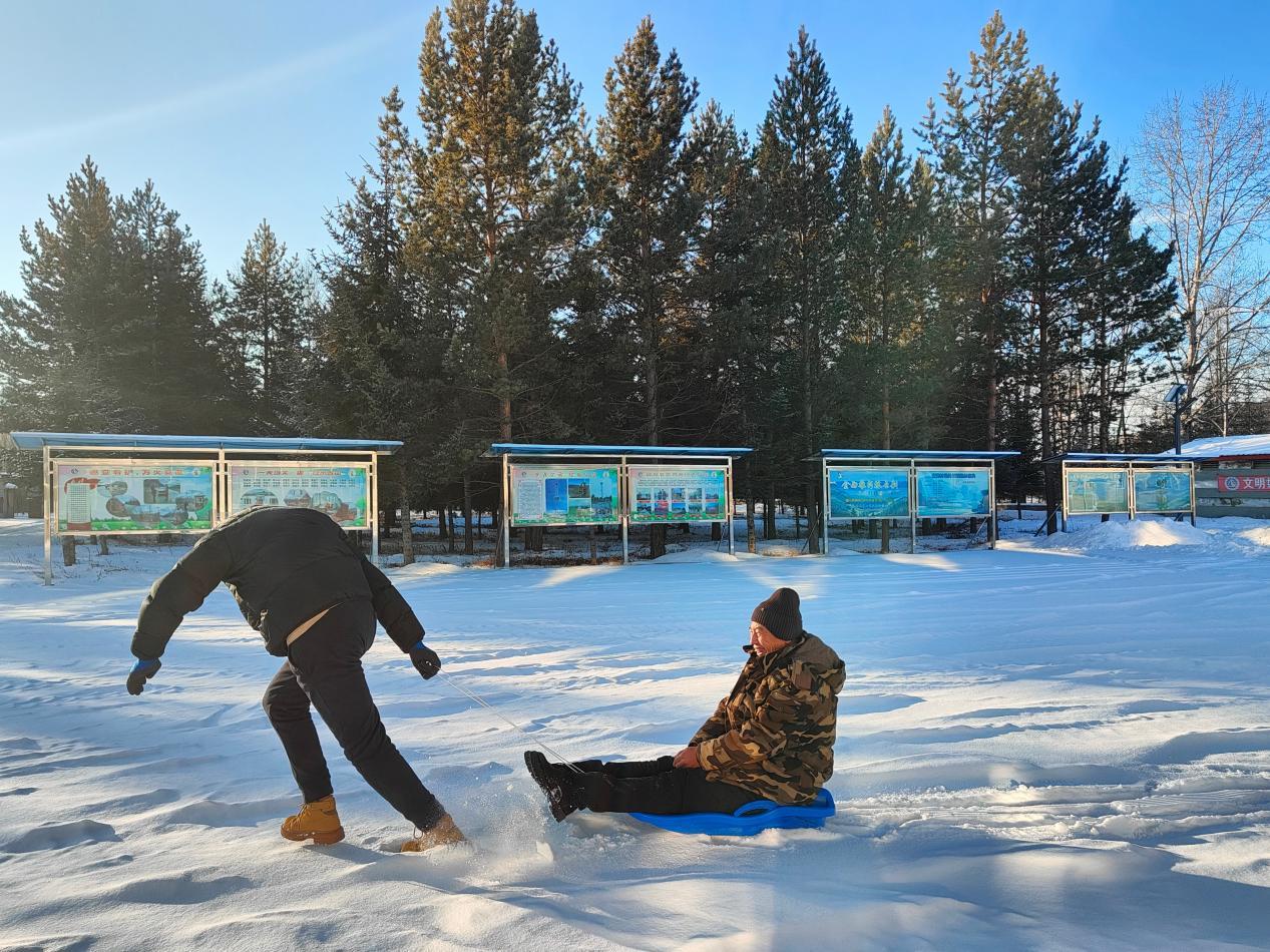 宏圖林場(chǎng)職工正在參加雪上拉爬犁項(xiàng)目(李婷 攝)