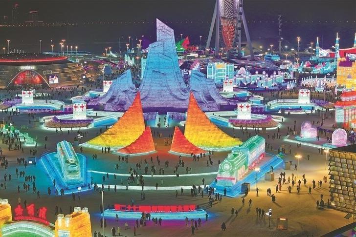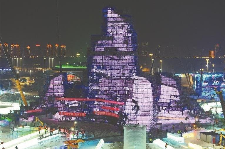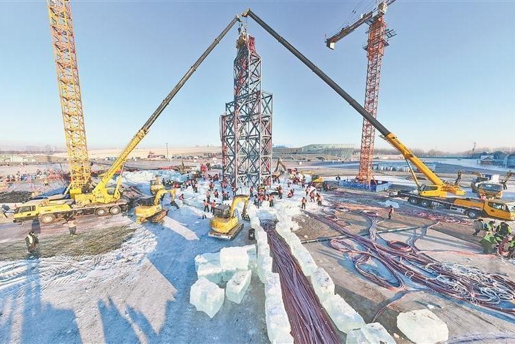 冰雪大世界主塔“冰燈啟夢(mèng)”封頂